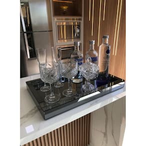 Bandeja espelhada traz consigo toda elegância do espelho fumê para a sua casa. Identidade única, sofisticação e autenticidade. Utilizada para decorar; Aparador, Áreas de lazer, Cozinha, Varandas, Salas, Centros de mesa e Barzinhos.