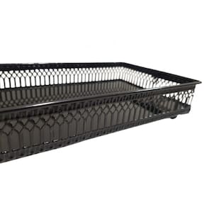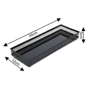 Para quem gosta de organização com beleza, a Jolitex criou a Bandeja Retangular Italiana. Feita em metal e espelho, a Bandeja Italiana serve para você organizar pequenos objetos, tanto de decoração, quanto de higiene. Podendo deixar seus ítens expostos de uma forma mais bela. Dando um toque de requinte aos seus perfumes, aromatizadores e o que mais você quiser expor. O espelho proporciona um toque sofisticado e elegante ao produto, pois reflete os objetos colocados. O metal preto em toda sua volta completa a peça, proporcionando segurança. Pois tem 5 cm de altura, fazendo com que os objetos colocados não caiam facilmente. Além do mais, uma peça preta exposta em qualquer cômodo da sua casa, combina com qualquer decoração dando mais toque de luxo e sofisticação.