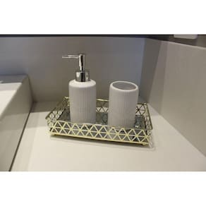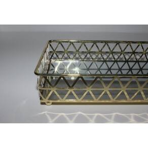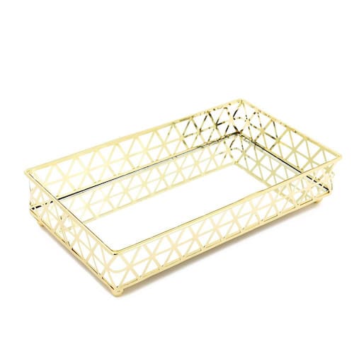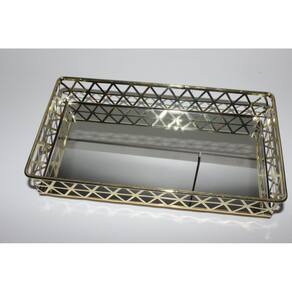 Para quem gosta de organização com beleza, a Jolitex criou a Bandeja Retangular Louvre. Feita em metal e espelho, a Bandeja Louvre serve para você organizar pequenos objetos, tanto de decoração, quanto de higiene. Podendo deixar seus ítens expostos de uma forma mais bela. Dando um toque de requinte aos seus perfumes, aromatizadores e o que mais você quiser expor. O espelho proporciona um toque sofisticado e elegante ao produto, pois reflete os objetos colocados. O metal dourado em toda sua volta completa a peça, proporcionando segurança. Pois tem 5 cm de altura, fazendo com que os objetos colocados não caiam facilmente. Além do mais, uma peça dourada exposta em qualquer cômodo da sua casa, combina com qualquer decoração dando mais toque de luxo e sofisticação.