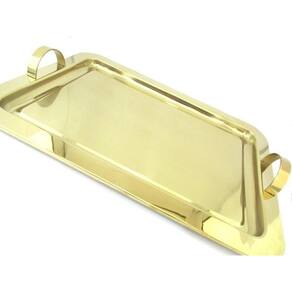 Bandeja Retangular Média Dourada Fineza Bandeja Retangular Média Fineza Material: Aço Inox Dimensões: 25x34,5 Contém: 1 Bandeja de aço inox com revestimento Dourado Todas as peças em aço inox, de alto padrão com revestimento dourado de alta durabilidade. Recomendações de uso:Use apenas sabão ou detergente e o lado macio da esponja. Outros tipos de produtos, como palha de aço, poderão riscar ou prejudicar o brilho. Enxágue bem cada peça a fim de remover totalmente os resíduos dos produtos de limpeza, que, por serem abrasivos, podem prejudicar o inox. Sempre que possível, use água morna, pois renova o brilho do produto. Após a lavagem, enxugue imediatamente o mesmo, caso contrário, as substâncias químicas da água cloro poderão causar manchas. Na lavagem manual evite atrito entre o produto durante o processo de lavagem e no armazenamento, para mantê-los sem riscos. Não recomendado também, o uso de máquina lava louças.