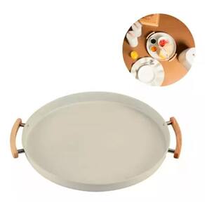 Bandeja Servir Decorativa Redonda Metal Bambu Sense - Bege - Bandeja Decorativa