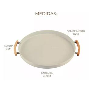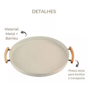 Bandeja Servir Decorativa Redonda Metal Bambu Sense - Bege - Bandeja redonda decorativa