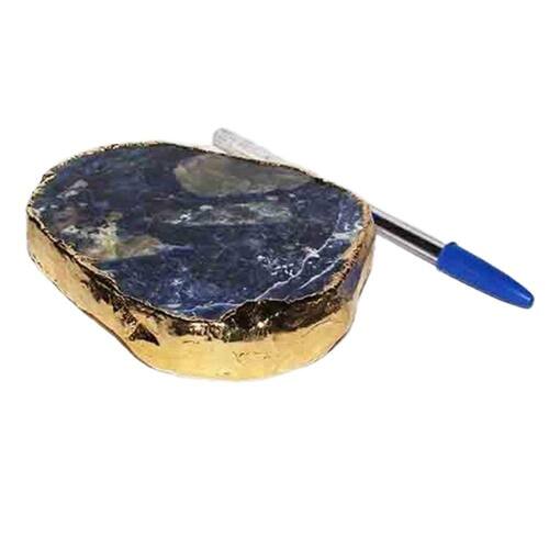 Bandeja de Sodalita Azul natural com 12 centimetros com borda dourada ideal para petisqueira e uma otima decoração Parte superior polida
