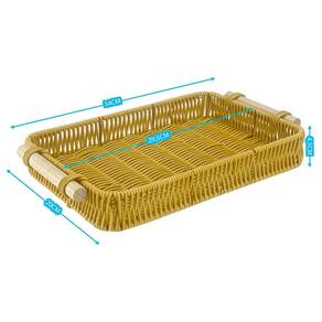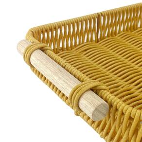 Bandeja Trama Tipo Vime Artificial Retangular Alça Madeira