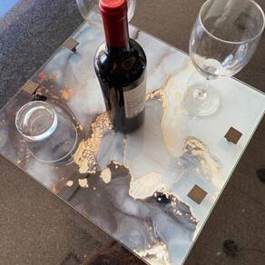 Material Premium: Vidro temperado com acabamento marmorizado, que confere sofisticação e durabilidade. Puxadores em Metal: Práticos e com um toque de requinte. Pés de Silicone Antiderrapante: Estabilidade e segurança em qualquer superfície. Design Sofisticado: Cantos arredondados para um visual moderno e delicado. Dimensões: Largura 40cm x Comprimento 45cm x Espessura 6mm.