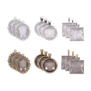 Bandeja de pingente e cabochão combináveis: O diâmetro do cabochão de vidro e o diâmetro interno da bandeja pendente são os mesmos, então eles são combináveis e o cabochão pode ser colocado nessas bandejas, para fazer joias diferentes. Várias finalidades: Este conjunto de bandejas de pingente com cabochão é amplamente aplicado, você pode usá-las para fazer pingentes de camafeu, joias fotográficas, resina, artesanato e joias personalizadas. Especificações: Diâmetro interno das bandejas pendentes redondas: 25,5 mm Bandejas ovais pendentes tamanho interno (LW): 18 x 25 mm Bandejas de pingente quadradas tamanho interno (LW): 25x 25 mm Material das bandejas pendentes: liga metálica Cores das bandejas pendentes: prata e bronze Quantidade de bandejas pendentes: 30 peças Diâmetro das telhas redondas da cúpula: 25,5 mm Tamanho dos ladrilhos ovais da cúpula (LW): 18 x 25 mm Tamanho das telhas quadradas da cúpula (LW): 25 x 25 mm Material dos azulejos da cúpula: vidro Cor dos azulejos da cúpula: transparente Quantidade de azulejos de cúpula: 30 peças A embalagem inclui: 5 pingentes de bandeja redonda prateada. 5 x pingentes de bandeja redonda de bronze 5 x pingentes de bandeja oval de prata 5 x pingentes de bandeja oval de bronze 5 x pingentes de bandeja quadrada prateada. 5 x pingentes de bandeja quadrada de bronze 10 cabochão de vidro redondo. 10 cabochão de vidro oval. 10 cabochão de vidro quadrado - Molduras pendentes: Feito de liga metálica forte, dura e durável, não flexiona ou dobra; redondo - 25,5 x 25,5 mm, oval - 18 x 25 mm, quadrado - 25 x 25 mm. - Azulejos de cúpula transparentes: Feito de vidro, duro e transparente, pode combinar bem com os pingentes; redondo - 25,5 x 25,5 mm, oval - 18 x 25 mm, quadrado - 25 x 25 mm. - O pacote inclui: Biséis - 5 peças em prata antiga e cor bronze para 3 tamanhos, 30 peças no total, 10 peças redondas, 10 peças ovais, 10 peças quadradas; Bandejas de cúpula: 10 peças em três tamanhos, 30 peças no total. - Fácil de usar: Cole o lindo padrão com o cabochão de vidro transparente, cubra os cabochão de vidro na bandeja do pingente e, em seguida, o pingente exclusivo da pulseira é finalizado. - Multiuso: estas bandejas de pingente com cabochão são boas necessidades para fazer joias DIY e podem ser amplamente aplicadas, como pingentes de camafeu, joias fotográficas, joias personalizadas, etc. - Amuleto de buquê de lapela de casamento: perfeito para adicionar memórias de família ao buquê de noiva!! Um belo toque para o buquê de casamento e será uma lembrança eterna para a noiva em memória dos entes queridos da noiva. - Amuletos de formatura: você pode adicionar a foto de sua mãe, pai, avó, avó, professora ao pingente de foto memorial para boné de formatura, fornecendo a você uma boa maneira de acompanhar suas pessoas significativas no dia da formatura.