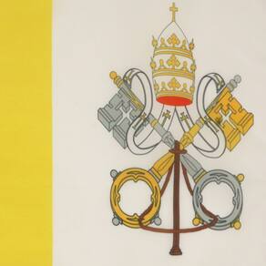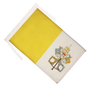 Bandera de la Ciudad del Vaticano AZ FLAG 45 x 30 cm con cuerdas - Banderas pequeñas del Vaticano 30 x 45 cm - Banner 45x30 cm - Acabado: Costuras y bordes reforzados - Para colgar: Cuerdas 218 - apertura superior e inferior - Material: Poliéster 100D - Uso: Interior y exterior moderado - Empaque: Bolsa de polietileno