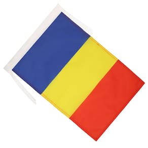 Bandera de Rumania AZ FLAG 45x30 cm con cuerda - banderas pequeñas rumanas 30 x 45 cm - Banner 18x12 pulgadas - Acabado: costuras y bordes reforzados - Colgado: 172 cm cuerda – abertura superior e inferior - Material: Poliéster 100D - Uso: interior y exterior moderado - Empaque: bolsa de polietileno