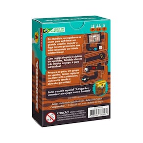 Bandida Em Bandida, os jogadores enfrentam um grande desafio em um dos três modos de jogo diferentes. Com regras simples e partidas rápidas de 15 minutos, este jogo cooperativo é perfeito para momentos de diversão com amigos ou família. Modos de Jogo:Capture a Bandida: Trabalhem juntos para fechar todas as saídas e impedir a fuga da prisioneira.Ajude a Bandida a Escapar: Unam forças para criar uma rota segura e ajudá-la a escapar dos túneis subterrâneos.A Fuga dos Amantes: Para quem já possui o jogo Bandido vendido separadamente , esse modo especial desafia você a ajudar um casal de fugitivos a escapar juntosCom componentes compactos e de alta qualidade, Bandida é fácil de transportar e proporciona tensão e diversão em qualquer lugar. Inclui: 71 cartasManual de regrasCaracterísticas: 1 a 4 jogadores15 minutos por partidaIndicado a partir de 6 anosGaranta o seu e decida: vai capturar ou libertar a prisioneira Homologação Inmetro: IP-BRI-2312/2021-03 Marca: Não Informado Ean: 7898706770562