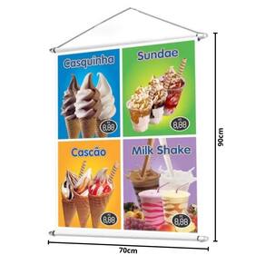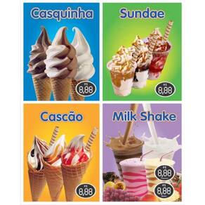 Baner 4 Fotos Sorvete Sundae Casquinha e Milk Shake Verão Formato Quadrado - 90cm x70cm
