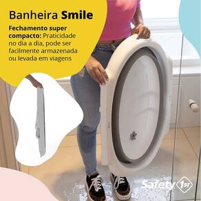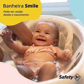 A Banheira Smile da Safety 1st foi criada para aquele momento delicioso e refrescante do banho seja repleto de alegria para o bebê, com a tranquilidade que os pais precisam, desde o primeiro banho, proporcionada pelo redutor que traz confiança e mais segurança para a realização desta tarefa. O redutor foi confeccionado em tela, macio e de secagem rápida, tem encaixe super fácil, para maior praticidade no uso diário. Falando em praticidade, possui saboneteira, válvula para esvaziamento, feita em borracha macia e o fechamento compacto tanto para armazenar em pequenos espaços ou levar, o que torna a Smile a companheira inseparável do seu bebê.