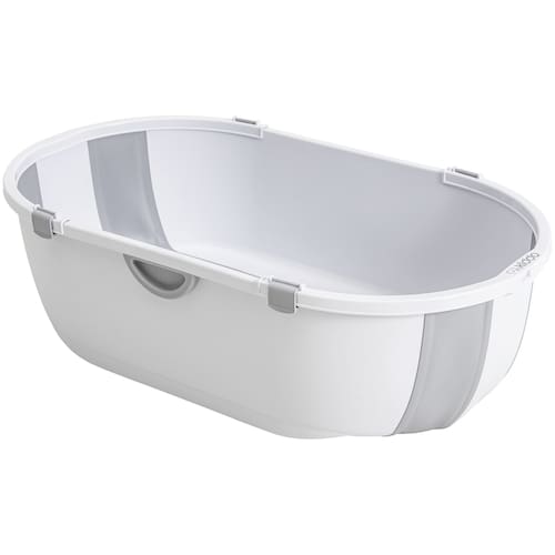 A Banheira Flap da Kiddo está disponível nas cores Azul, Rosa e Cinza, trazendo modernidade e elegância para o momento do banho do seu bebê.
