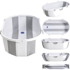 Banheira dobrável com fechamento compacto Estrutura plástica resistente Design moderno e funcional Válvula para escoamento da água Pode ser utilizada desde recém-nascidos Limite de peso: até 40 kg (água + criança) Medidas da Banheira Aberta: Altura 25 cm x Largura 46 cm x Comprimento 78 cm Medidas Fechada: Altura 79 cm x Largura 54 cm x Comprimento 19 cm (aproximadamente) Peso total: 1,5 kg
