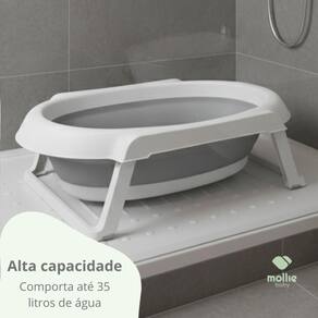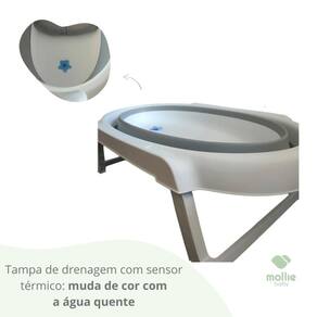 Com capacidade de até 35 litros, a Banheira Dobrável Mollie Baby foi desenvolvida para tornar o momento do banho mais relaxante, prático e confortável, tanto para o bebê quanto para quem cuida. Com design compacto e almofada ergonômica, ela possui suporte para sabonete e sensor térmico na válvula de drenagem, que muda de cor com a água quente. Ideal para acompanhar desde os primeiros dias até os 3 anos de idade, pode ser usada em qualquer lugar. Dobrável e compacta, pode ser guardada em diversos locais, oferecendo uma experiência completa, com todo o cuidado necessário.