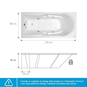 Informações Complementares: Reforçado com fibra de vidro. Acomoda uma pessoa.Possui fundo plano com piso antiderrapante. Capacidade: Importante seguir o volume Ideal para não transbordar