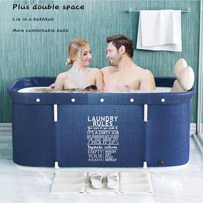 Acompanha encosto inflável para maior comodidade ( a cor do encosto pode variar, as fotos são merameBanheira DobrÃvel Retangular com Acessorios Laundry Rules VG+