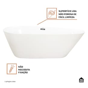 A Banheira Freestanding Imersão Ipameri Pingoo.casa oferece conforto e sofisticação para o seu banheiro por proporcionar uma experiência relaxante com um design moderno, sendo capaz de acomodar até duas pessoas com segurança. Produzida em acrílico, ela garante resistência, além de uma estrutura autônoma que dispensa a necessidade de alvenaria, tornando a instalação prática.
