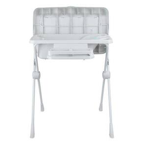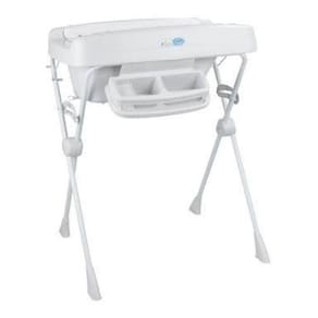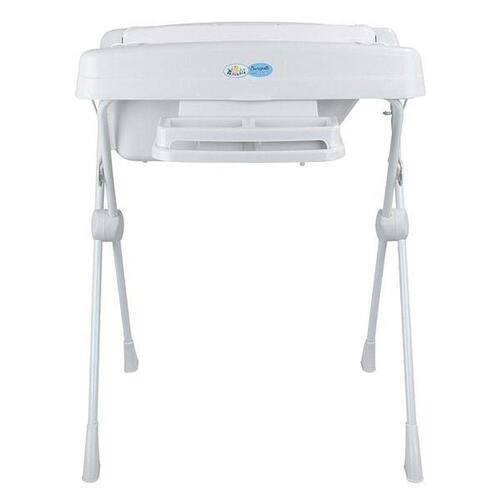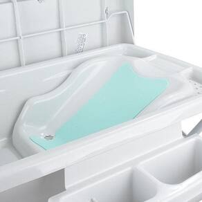 O assento vem acompanhado de um redutor de profundidade para o recém-nascido. Além de segura, é muito prática: tem saboneteira com porta-toalha e mangueira para escoamento da água. Ao fechar o tampo plástico, se transforma em trocador acolchoado.