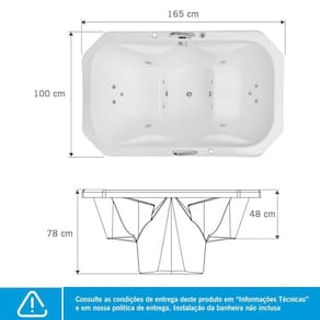 O Ofurô é um modelo de Banheira Oriental, mais profunda e que cobre até os ombros do usuário sentado. O modelo Zen Maggiore acomoda duas pessoas e em sua versão Gran Luxo, conta com itens de série como deck de fechamento, jatos e minijatos de hidromassagem, além de acessórios opcionais como aquecedor, que proporcionam um banho ainda mais relaxante. Aba Lateral: Sim Aba para pés: Sim Acionamento Pneumático: Sim Acompanha Aquecedor: Sem Aquecedor Acompanha Manual de Instalação: Sim Acompanha Motobomba: 01 Air Blower: Não Alças de Apoio: 02 Altura: 78 cm Ambiente Principal: Banheiro Apoio de Cabeça: Não Cascata: Não Certificado: Certificadas de acordo com as normas IEC 60335-1 e 60335-2-60, conforme a Portaria INMETRO n° 148/2022. Comprimento: 165 cm Cor: Branco Cor do Produto: Branco Cromoterapia: Não Dispositivo de Sucção: 02 Ducha com desviador: Não Entrada de Água: Sim Entrada de Ar: Sim Formato: Retangular Kit Hidráulico: Sim Largura: 100 cm Litros: 300 l Manual de Montagem e Instalação: https://product-hub-prd.madeiramadeira.com.br/936795/documents/827805f6-0355-42e1-a8fb-c0ec92e4eafc2272564banheiras.pdf Marca: Astra Necessita Instalação: Sim Origem do Produto: Nacional Peso: 107,3886 kg Possui Pés: Não Quantidade de Jatos da Hidromassagem: 04 Quantidade de Lugares: 02 Quantidade de Minijatos: 10 Recomendações de Uso, Manutenção e Limpeza: Para limpeza, utilize flanela e sabão detergente neutro. NUNCA UTILIZE:Produtos a base de álcool, cloro ou amôniaProdutos abrasivos (tipo Sapólio, esponjade aço etc).Solvente (tipo acetona, benzina, éter etc). Para manter o brilho da peça utilize:Fl Sistema de Som: Não Sistema instala fácil: Não Tubulação de Água e Ar: Sim Válvula de saída de água: Sim