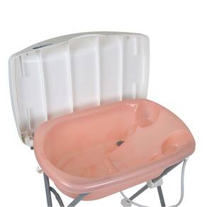 Características principais: • Tampo plástico com trocador acolchoado. • Saboneteira incorporada. • Mangueira para escoamento de água. • Indicador de nível máximo de água. • Rodas nas pernas, para transporte. • Plug projetado para rápido escoamento da água. • Fácil de abrir, dobrar e guardar. • Capacidade máxima de 20kg: Sendo criança de até 10kg + 10 Litros de água (20kg).