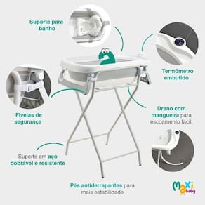 Banheira Para Bebê Dobrável Com Suporte e Termômetro Wish Branco - Maxi Baby A Banheira Dobrável com Suporte para Bebês é a combinação perfeita entre segurança, praticidade e conforto para a rotina de cuidados com os pequenos. Desenvolvida para bebês de 0 a 3 anos até 15 kg , ela traz um design moderno e inteligente, pensado para facilitar o dia a dia das famílias sem abrir mão da tranquilidade e do bem-estar do bebê. Conta com estrutura ergonômica e termômetro embutido, permitindo o controle ideal da temperatura da água. Almofada suporte de poio interno acolchoado removível oferece maior conforto ao bebê durante o banho, enquanto as 4 fivelas de segurança e os pés com base antiderrapante garantem firmeza e estabilidade ao suporte dobrável em aço. Com capacidade para até 40 litros de água, a banheira é resistente, leve e extremamente funcional. Após o uso, pode ser dobrada de forma prática, ocupando pouco espaço, ideal para quem busca soluções compactas para armazenar ou levar em viagens. Além disso, o dreno com mangueira acoplada facilita o escoamento da água, evitando bagunça e otimizando o tempo. Produzida com materiais seguros e livres de BPA e ftalatos, está em conformidade com a norma europeia de segurança EN17072, garantindo ainda mais confiança para os pais. Uma escolha prática, segura e confortável para o cuidado diário com o seu bebê. Principais Características: - Idade recomendada: de 0 a 3 anos até 15 kg - Livre de BPA e ftalatos, conforme norma europeia EN17072 - Capacidade da banheira: até 40 litros - Suporte em aço dobrável e compacto com pés antiderrapantes - Termômetro embutido para controle da temperatura da água - Suporte para Banho: Almofada de apoio interna para maior conforto do bebê - Mangueira de drenagem para escoamento prático da água - Acompanha 4 fivelas de segurança, chave allen e chave plana - Fácil de montar, limpar, guardar e transportar Especificações Técnicas: - Conteúdo da Embalagem: 1 Banheira com termômetro embutido, 1 Suporte almofada para banho, 1 mangueira de drenagem, 4 fivelas de segurança, 1 chave allen e 1 chave plana. - Composição/ Material: Suporte em aço, banheira em PP Polipropileno + TPE - Dimensões da banheira: 80 cm x 47 cm x 21 cm aprox. - Dimensões do suporte: 80 cm x 50 cm x 91 cm aprox. - Peso Liquido: 3,500 kgs - : 90 Dias Contra Defeito de Fabricação Pelo Fabricante - Código do Fabricante: 21847 - EAN: 7899403218470 - Marca: Maxi Baby Imagens Meramente Ilustrativas Cores e Modelos podem mudar conforme o lote de fabricação.
