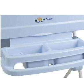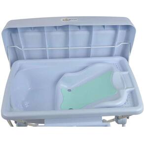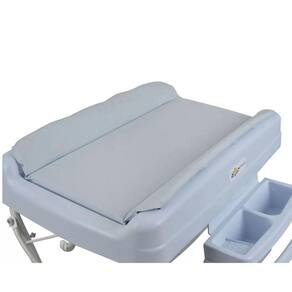 Trocador: Trocador com estofado macio e suave ao toque Assento redutor: Assento redutor de profundidade para recém-nascidos Porta-objetos: Porta-objetos removível com suporte para toalha Gancho: Gancho para guardar a cuba da banheira junto ao suporte Mangueira: Mangueira para um prático escoamento de água