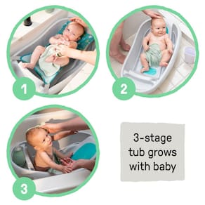 Ingenuity Banheira confortável de luxo recém-nascido para bebê infantil, 3 em 1 com faixa removível, encosto acolchoado, 0 a 24 meses, cinza - 3 modos para manter o bebê confortável e seguro na hora do banho, de recém-nascido a criança - Alça de tecido para acomodar bebês na infância; encosto reclinável acolchoado com suportes laterais para ajudar o bebê a crescer; área de estar espaçosa para crianças pequenas - A bandeja de assistência aos pais mantém os itens essenciais de banho por perto para que você possa se concentrar na hora do banho - Plugue de drenagem de fácil acesso e materiais fáceis de limpar para limpeza rápida - Cabe em pias simples ou duplas e banheiras adultas; segurança de terceiros testada e aprovada