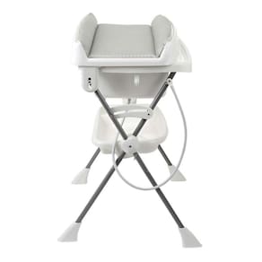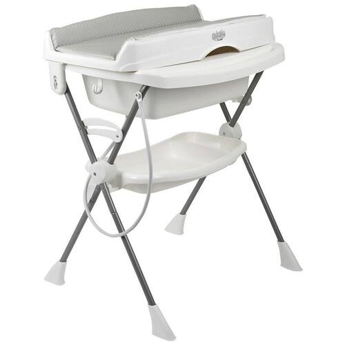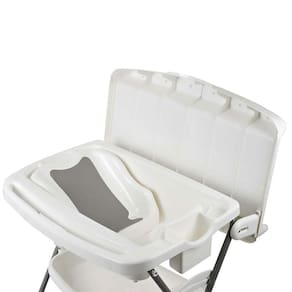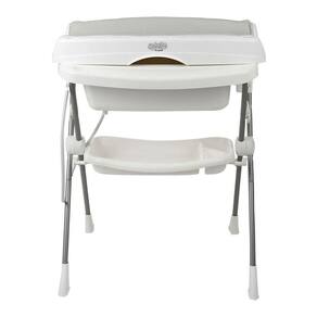 Características Técnicas: Cor predominante: granito branco Suporte desmontável Tampo plástico com trocador acolchoado Laminado plástico mais suave ao toque Mangueira para escoamento da água Porta-toalha Com gancho para guardar e ocupar menos espaço Chassi com acabamento cinza e partes plásticas em branco