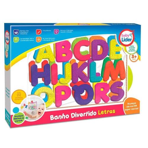 O banho é uma ótima oportunidade para a criança ter os primeiros contatos com as letras. As peças aderem na parede e garantem muita diversão e aprendizado. O brinquedo estimula a criatividade, cognição, interação, sensibilidade tátil e coordenação motora. As cores estimulam a percepção visual.