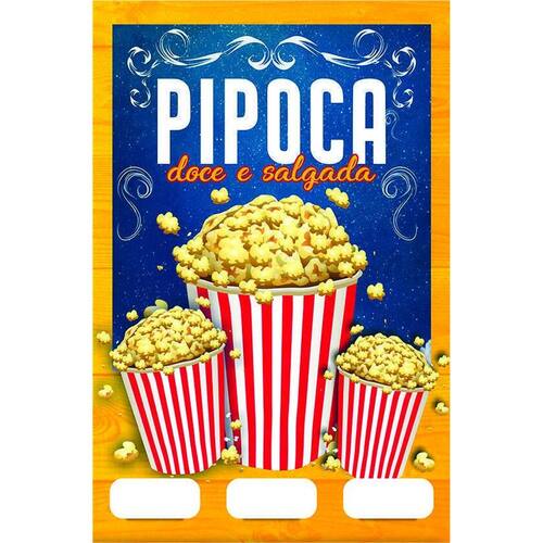 Banner Arte Pronta - Pipoca Doce e Salgada A arte é a imagem do anúncio. Promova e divulgue seu produto com qualidade. Banners temáticos de produtos e serviços para atrair a atenção de seus clientes. Especificações: Material: lona Acabamento: e corda. Tamanho: 60x80cm Uso: interno e externo. Material impresso em alta qualidade com cores viva Informações complementares: Não alteramos a arte deste produto, a arte é a imagem que está sendo anunciada.