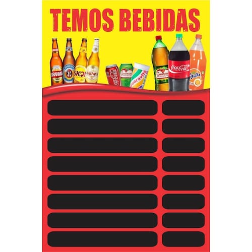 Banner Arte Pronta - Temos Bebidas Tabela Amarela e Vermelha A arte é a imagem do anúncio. Promova e divulgue seu produto com qualidade. Banners temáticos de produtos e serviços para atrair a atenção de seus clientes. Especificações: Material: lona Acabamento: e corda. Tamanho: 60x80cm Uso: interno e externo. Material impresso em alta qualidade com cores viva Informações complementares: Não alteramos a arte deste produto, a arte é a imagem que está sendo anunciada. Ean: 7890001077698