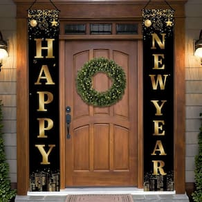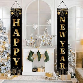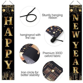 Decorações de Feliz Ano Novo - Material de qualidade: nossa faixa de Feliz Ano Novo 2025 é feita de tecido Oxford 300D de alta qualidade, garantindo durabilidade e robustez para suas celebrações festivas. - Tamanho grande e reutilizável: Medindo aproximadamente 180 cm x 30 cm, este banner de decoração de Ano Novo é perfeito para decorações internas e externas. Seu design robusto permite fácil armazenamento e uso repetido por muitos anos. - Fácil de usar: pré-montado, este banner de varanda de ano novo pode ser pendurado sem esforço em paredes, quintais, portas da frente ou garagens. Com dois ilhós na parte inferior, você pode prendê-lo com pesos para evitar que ele sopre com o vento. - Perfeito para oportunidades de foto: ilumine suas festividades de Ano Novo com nosso luxuoso banner preto e dourado "Feliz Ano Novo", tornando-o um acessório ideal para capturar inúmeras fotos memoráveis durante suas celebrações. - Crie uma atmosfera alegre: Transforme seu espaço em um ambiente animado de véspera de Ano Novo com nossa faixa de Feliz Ano Novo. Que o Ano Novo lhe traga felicidade, paz e prosperidade. Desejamos a você um feliz 2025!
