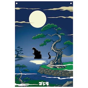 - GODZILLA FANDOM: O rei Kaiju está de volta! Encapsulando a natureza misteriosa de Godzilla, este banner de parede de inspiração japonesa mostra o monstro voltando para o mar aberto.