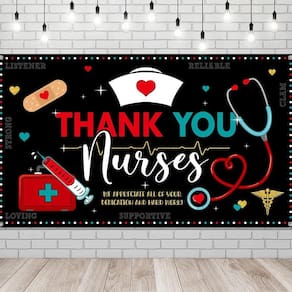 Material: poliéster Tamanho: 150 cm × 100 cm Peso: 160 g Nurse Appreciation Backdrop — Um design vibrante de “agradecimento às enfermeiras” com símbolos de saúde como seringas, band-aids, estetoscópios e o caduceu para homenagear e homenagear enfermeiras. Perfeito para o Dia das Enfermeiras — Ideal para a Semana da Enfermagem, celebrações do Dia da Enfermeira ou qualquer evento de valorização da saúde, este banner expressa gratidão a todas as enfermeiras trabalhadoras e atenciosas. Material de poliéster durável — Feito com poliéster de alta qualidade, esse pano de fundo é leve, durável e fácil de pendurar, garantindo que dure durante todo o evento. Fácil configuração — Vem com ilhós para pendurar sem complicações, tornando-o o complemento perfeito para a decoração do seu evento, cenário fotográfico ou área de festa. Ótimo para sessões de fotos — Torne sua festa ou evento do Dia das Enfermeiras ainda mais memorável usando esse cenário para fotos e selfies com colegas enfermeiros, amigos e colegas.