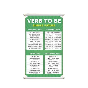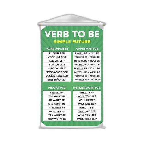 Especificações técnicas: - Tamanho: 60x40cm - Material: Lona de alta qualidade - Espessura: 340g - Bastões de madeira na parte superior para facilitar a fixação - Corda resistente para fácil exibição - Ideal para o ensino do Verbo To Be no Futuro Simples Marca: Não Informado