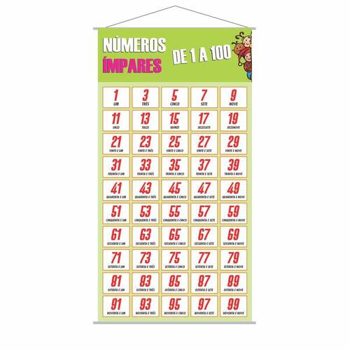 Banner Escolar Números Ímpares Até 100 Pedagógico 1,20X0,65M