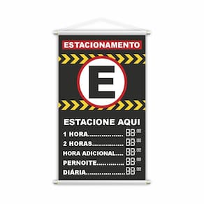 Se você busca um banner resistente, com boa visibilidade e acabamento de qualidade, o Estacionamento Estacione Aqui com Tabela de Horas e Preços é a escolha ideal para manter seu local organizado e proporcionar informações claras aos seus clientes.