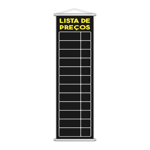 O banner Lista de Preços é uma peça prática e funcional, ideal para quem precisa apresentar informações de forma clara e atrativa em diversos ambientes. Com o tamanho de 100x30cm, essa peça é perfeita para ser colocada em lojas, mercados, restaurantes, escritórios ou qualquer outro tipo de estabelecimento que precise exibir preços ou promoções de maneira destacada e organizada. Seu design simples, mas eficiente, permite que a mensagem seja facilmente visualizada, tornando-o um item essencial para o dia a dia comercial. Feito com lona de 340g, um material de alta qualidade e resistência, o banner oferece uma durabilidade excepcional. A lona é resistente ao desgaste, garantindo que a peça mantenha sua integridade e aparência, mesmo com o uso constante. A impressão direta sobre a lona garante uma imagem nítida e cores vibrantes, que permanecem intactas ao longo do tempo, mesmo quando expostas a diferentes condições de iluminação e ao longo do uso. A lona de 340g também proporciona uma ótima resistência a intempéries, tornando a peça adequada para ambientes internos e externos. O acabamento do banner é cuidadosamente elaborado para garantir tanto a funcionalidade quanto a estética. Nas extremidades superior e inferior, o banner conta com bastões de madeira, que proporcionam estrutura e estabilidade à peça. Esses bastões mantêm o banner esticado e alinhado, garantindo que as informações exibidas permaneçam claras e visíveis. A madeira adiciona um toque rústico e sofisticado ao produto, combinando perfeitamente com o estilo prático e funcional da peça. Na parte superior, uma corda resistente é fixada para facilitar o processo de pendurar. A corda não só torna a instalação rápida e prática, mas também acrescenta um charme decorativo, com um toque rústico que complementa o design da peça. Seja para ser colocado em uma parede, em uma ou pendurado em qualquer espaço, o banner pode ser facilmente fixado, tornando-o ideal para ambientes comerciais e promocionais. Ideal para exibir listas de preços, promoções ou qualquer outra informação que precise ser acessada rapidamente, o banner Lista de Preços é uma solução prática, durável e visualmente atraente para quem deseja organizar e destacar seus preços ou ofertas de maneira simples e eficiente. Sua combinação de lona resistente, bastões de madeira e corda para pendurar garante não apenas a funcionalidade, mas também um toque de charme e rusticidade, que fará a diferença em seu espaço comercial. Se você precisa de uma forma eficaz e estilosa de exibir suas listas de preços, o banner Lista de Preços é a escolha ideal para quem busca uma solução prática e de qualidade, sem abrir mão do estilo e da durabilidade.