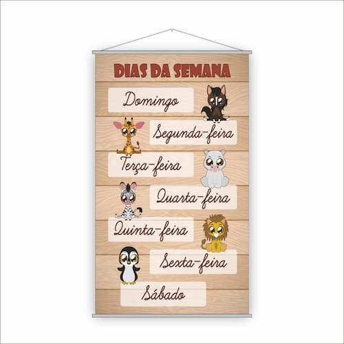 Banner Pedagógico Escolar - Dias Da Semana Cursivo 120X65Cm