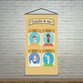 Banner Pedagógico Escolar Estações Do Ano 80X50Cm TAMANHO: Banner com medida total de 80x50cm ACABAMENTO: Bastões de madeira + corda na parte superior. Atualmente existem diversas formas de aprendizado e a modernidade facilita e ajuda no desenvolvimento de cada passo escolar e pedagógico de uma criança. O banner pedagógico é uma delas, uma ótima forma de incentivar e começar a trabalhar a mente e praticar o aprendizado. Desenvolvemos diversos modelos de banners e cada um deles oferece apoio e ajuda no desenvolvimento em várias áreas. Quer ajudar os seus alunos a desenvolver esses aprendizados Os Banners Pedagógicos são excelentes para trabalhar de uma forma interativa o desenvolvimento dos alunos, facilitando na hora de ensinar e memorizar cada passo. Marca: Não Informado