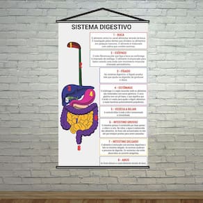 Banner Pedagógico Escolar Sistema Digestivo 80X50Cm TAMANHO: Banner com medida total de 80x50cm ACABAMENTO: Bastões de madeira + corda na parte superior. Atualmente existem diversas formas de aprendizado e a modernidade facilita e ajuda no desenvolvimento de cada passo escolar e pedagógico de uma criança. O banner pedagógico é uma delas, uma ótima forma de incentivar e começar a trabalhar a mente e praticar o aprendizado. Desenvolvemos diversos modelos de banners e cada um deles oferece apoio e ajuda no desenvolvimento em várias áreas. Quer ajudar os seus alunos a desenvolver esses aprendizados Os Banners Pedagógicos são excelentes para trabalhar de uma forma interativa o desenvolvimento dos alunos, facilitando na hora de ensinar e memorizar cada passo.