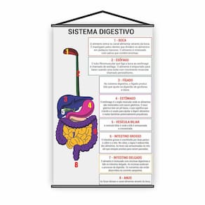 Banner Pedagógico Escolar Sistema Digestivo 80X50Cm TAMANHO: Banner com medida total de 80x50cm ACABAMENTO: Bastões de madeira + corda na parte superior. Atualmente existem diversas formas de aprendizado e a modernidade facilita e ajuda no desenvolvimento de cada passo escolar e pedagógico de uma criança. O banner pedagógico é uma delas, uma ótima forma de incentivar e começar a trabalhar a mente e praticar o aprendizado. Desenvolvemos diversos modelos de banners e cada um deles oferece apoio e ajuda no desenvolvimento em várias áreas. Quer ajudar os seus alunos a desenvolver esses aprendizados Os Banners Pedagógicos são excelentes para trabalhar de uma forma interativa o desenvolvimento dos alunos, facilitando na hora de ensinar e memorizar cada passo. Marca: Não Informado