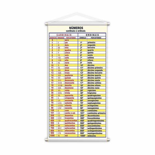 Banner Pedagógico Números Cardinais E Ordinais 120X60Cm