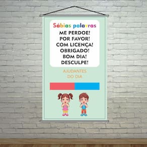 Banner Pedagógico Sábias Palavras Ajudantes Do Dia 80X50Cm TAMANHO: Banner com medida total de 80x50cm ACABAMENTO: Bastões de madeira + corda na parte superior. Atualmente existem diversas formas de aprendizado e a modernidade facilita e ajuda no desenvolvimento de cada passo escolar e pedagógico de uma criança. O banner pedagógico é uma delas, uma ótima forma de incentivar e começar a trabalhar a mente e praticar o aprendizado. Desenvolvemos diversos modelos de banners e cada um deles oferece apoio e ajuda no desenvolvimento em várias áreas. Quer ajudar os seus alunos a desenvolver esses aprendizados Os Banners Pedagógicos são excelentes para trabalhar de uma forma interativa o desenvolvimento dos alunos, facilitando na hora de ensinar e memorizar cada passo. Ean: 7908376105608