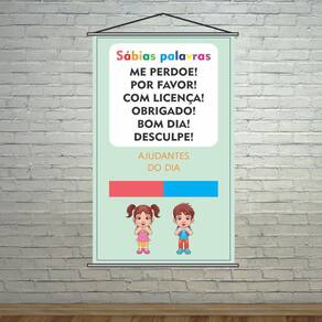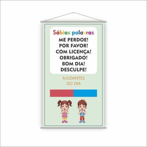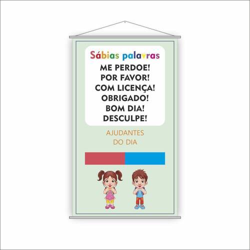 Banner Pedagógico Sábias Palavras Ajudantes Do Dia 80X50Cm TAMANHO: Banner com medida total de 80x50cm ACABAMENTO: Bastões de madeira + corda na parte superior. Atualmente existem diversas formas de aprendizado e a modernidade facilita e ajuda no desenvolvimento de cada passo escolar e pedagógico de uma criança. O banner pedagógico é uma delas, uma ótima forma de incentivar e começar a trabalhar a mente e praticar o aprendizado. Desenvolvemos diversos modelos de banners e cada um deles oferece apoio e ajuda no desenvolvimento em várias áreas. Quer ajudar os seus alunos a desenvolver esses aprendizados Os Banners Pedagógicos são excelentes para trabalhar de uma forma interativa o desenvolvimento dos alunos, facilitando na hora de ensinar e memorizar cada passo.