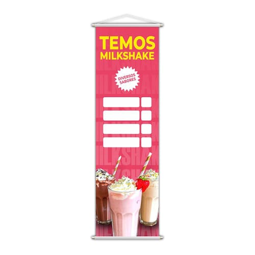 Banner Temos Milkshake Diversos Sabores Preço 100x30cm