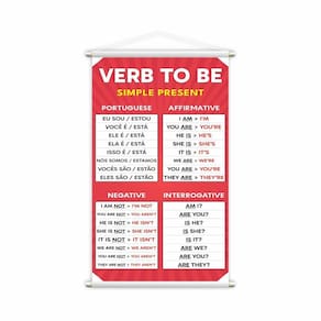 O banner verb to be simple present inglês pedagógico grande é um recurso valioso para professores de língua inglesa que desejam enriquecer suas aulas sobre a conjugação do verbo to be no presente simples. Com suas generosas dimensões de 120x60cm, este banner foi projetado especificamente para se destacar em ambientes educacionais, permitindo que os alunos compreendam de forma clara e eficaz esse conceito gramatical crucial. Este banner pedagógico é confeccionado com lona de alta resistência, com um peso de 340g, garantindo durabilidade e a capacidade de resistir ao uso frequente em uma sala de aula movimentada. Os cantos superiores deste banner estão equipados com bastões de madeira de qualidade, que não apenas reforçam sua durabilidade, mas também tornam o processo de exposição mais simples e prático. Para facilitar a instalação, o banner vem com uma corda na parte superior, o que permite aos professores pendurá-lo facilmente na sala de aula ou em qualquer local desejado. Isso elimina a necessidade de ferramentas adicionais e poupa tempo, tornando-o um recurso conveniente para professores ocupados. O verb to be no presente simples é um dos pilares da gramática inglesa, e dominá-lo é essencial para a comunicação precisa na língua. Este banner foi cuidadosamente elaborado para auxiliar professores e alunos na compreensão deste tópico fundamental. Ele apresenta de maneira clara e concisa as conjugações do to be no presente, destacando as formas afirmativas, negativas e interrogativas. Além disso, oferece exemplos práticos que ajudam os alunos a internalizar as regras de uso. A presença deste banner na sala de aula não apenas ajuda os alunos a consolidar o conhecimento sobre o verb to be simple present, mas também serve como um recurso de consulta constante, reforçando o aprendizado a cada dia. Este banner pedagógico é uma ferramenta altamente eficaz e versátil, adequada para professores de todos os níveis, desde iniciantes até avançados, e pode ser utilizado em aulas regulares, revisões ou mesmo como parte de atividades de reforço.