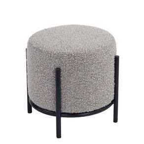 Banqueta otomana Benjara AOP de 13 polegadas, assento redondo acolchoado, boucle, cinza e preto