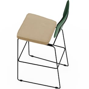 Revestimento do encosto em Facto Verde Musgo de alta qualidade, com acabamento semi brilho.