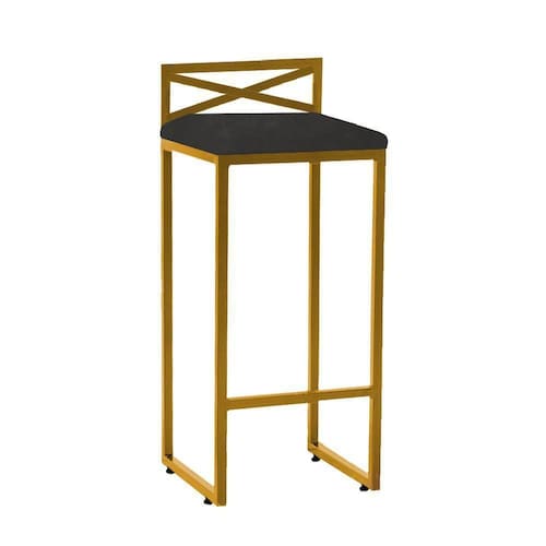 Banqueta Alta Com Encosto Ema Balcão Bar Cozinha Bistrô Ferro Dourado Corino Cinza - Ahazzo Móveis Cor Cinza